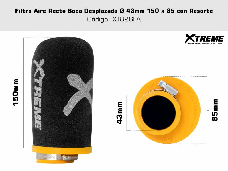 Filtro Aire Recto Boca Desplazada Ø 43mm 150 x 85 C/Resorte
