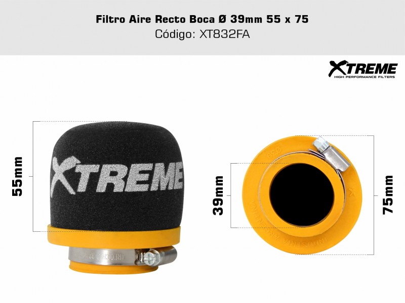 Filtro Aire Recto Boca Ø 39mm 55 x 75